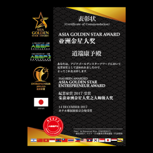 マレーシアを拠点にアジアで絶大なる影響力を持つ、アジア優秀企業家連盟(AEEF)が優れた「企業、人、モノ、サービス」を、この9年間で5000社以上の表彰を行い、受賞されたモノが海外でのブランド化戦略に繋がっています。そのアジア優秀企業家連盟(AEEF)と、私ども一般社団法人 アジア・日本優秀企業家連盟(AEEFJ)が連携を組み、”ASIA GOLDEN STAR AWARD”として日本にて授賞式を開催しております。日本の優れた「企業、人、モノ、サービス」を世界への扉を開くサポート致します。